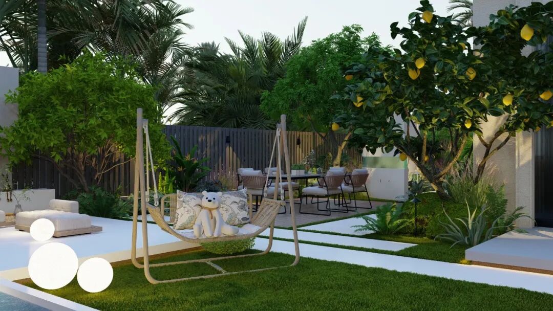 通过合理的灯光布置,不仅能在夜晚提供照明,还能营造出与白天截然不同的氛围,使得夜晚的庭院同样充满宁静和放松的气息。