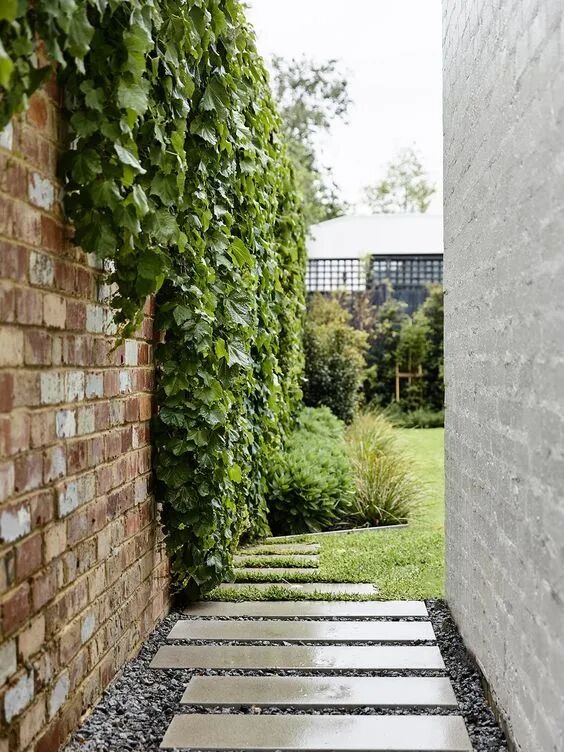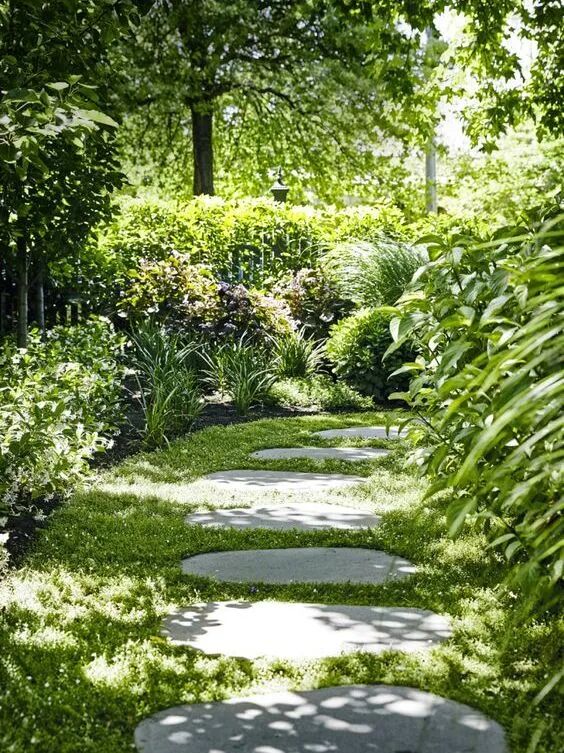 在狭长的空间中布置汀步,与草地自然的融为一体,整个空间看起来便不至于太拥挤。青岛花园设计
