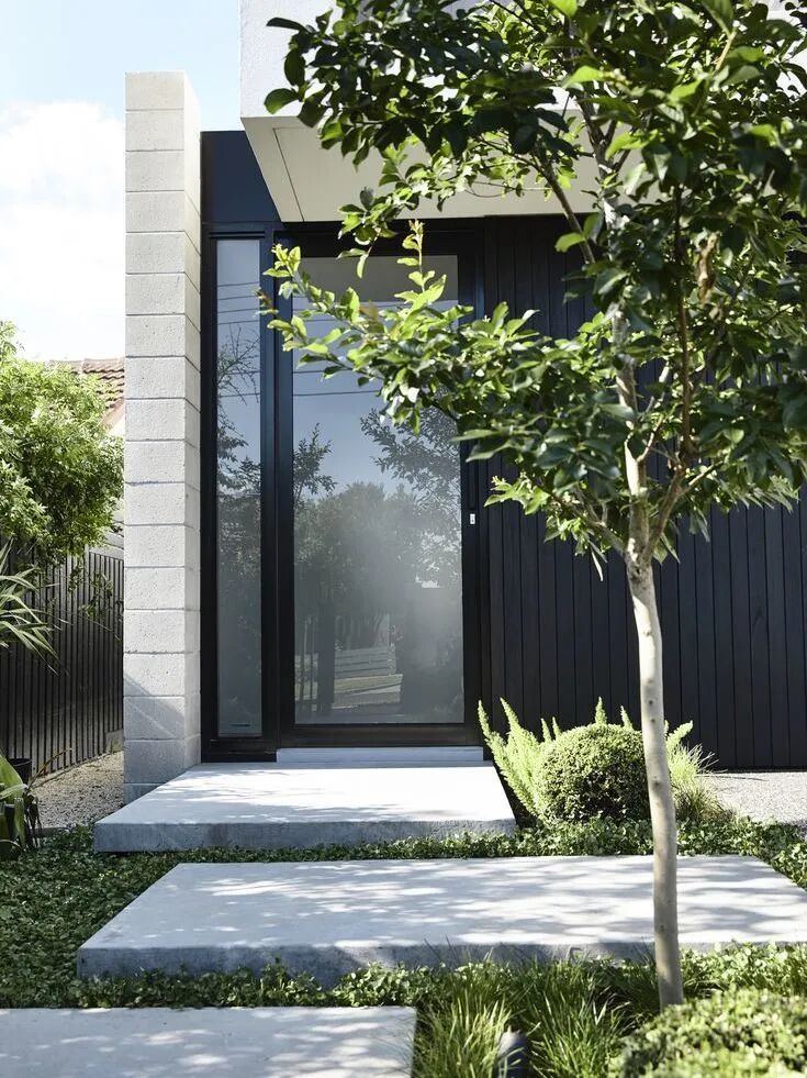 而不规则的汀步也颇有设计感,让庭院的小道不再单调的同时也能保证草坪植被不被破坏,予人一种别样的自然体验。