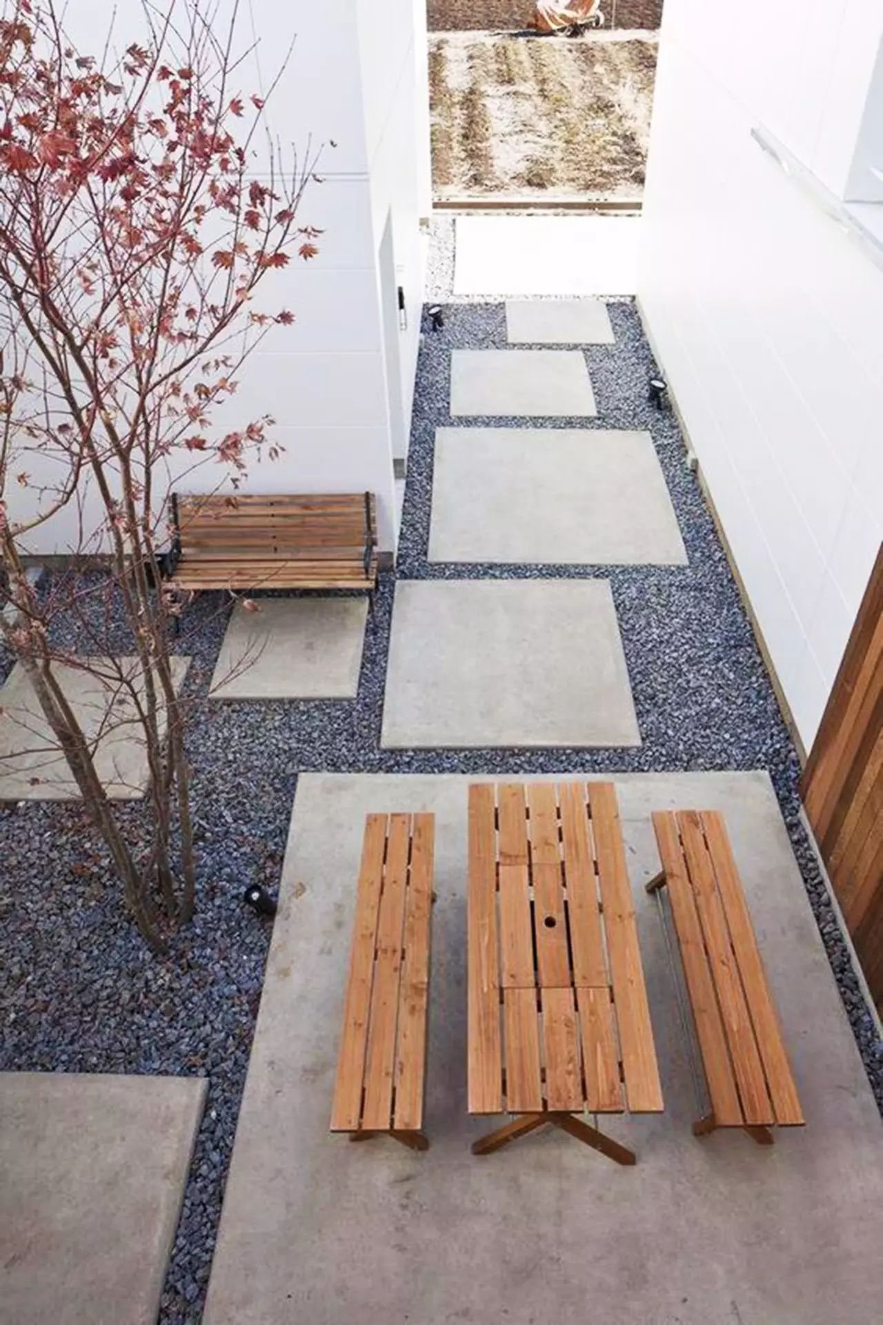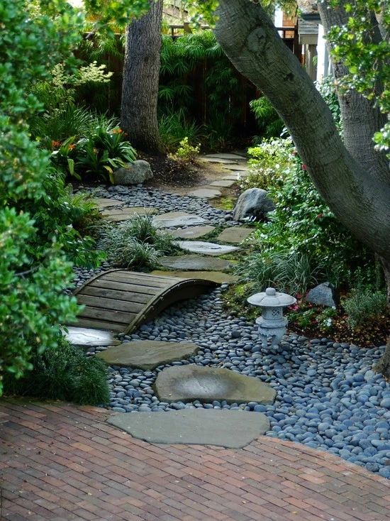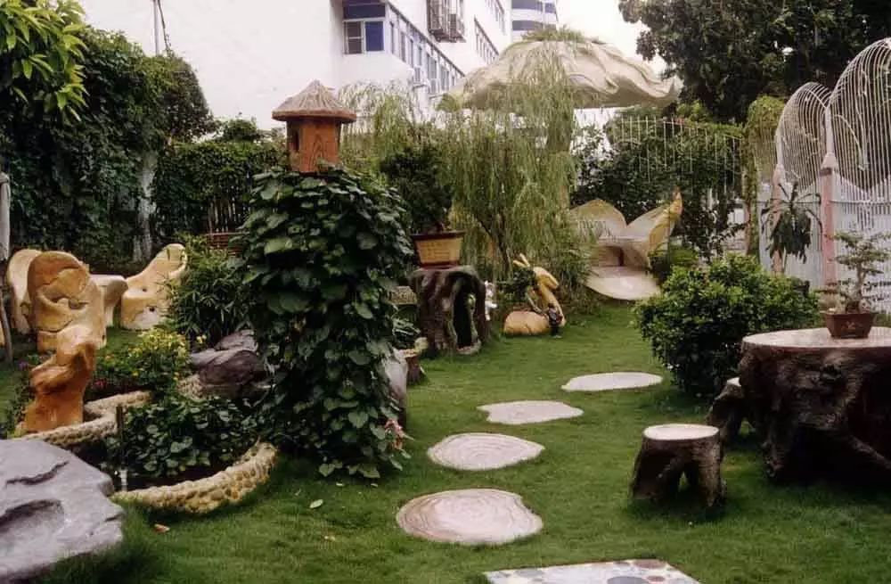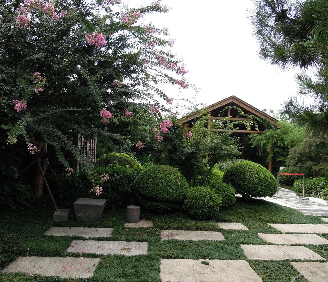 与沙砾结合的汀步,在形式上构成变化和对比,在色彩上却能很好的做到统一,使整个空间搭配和谐。