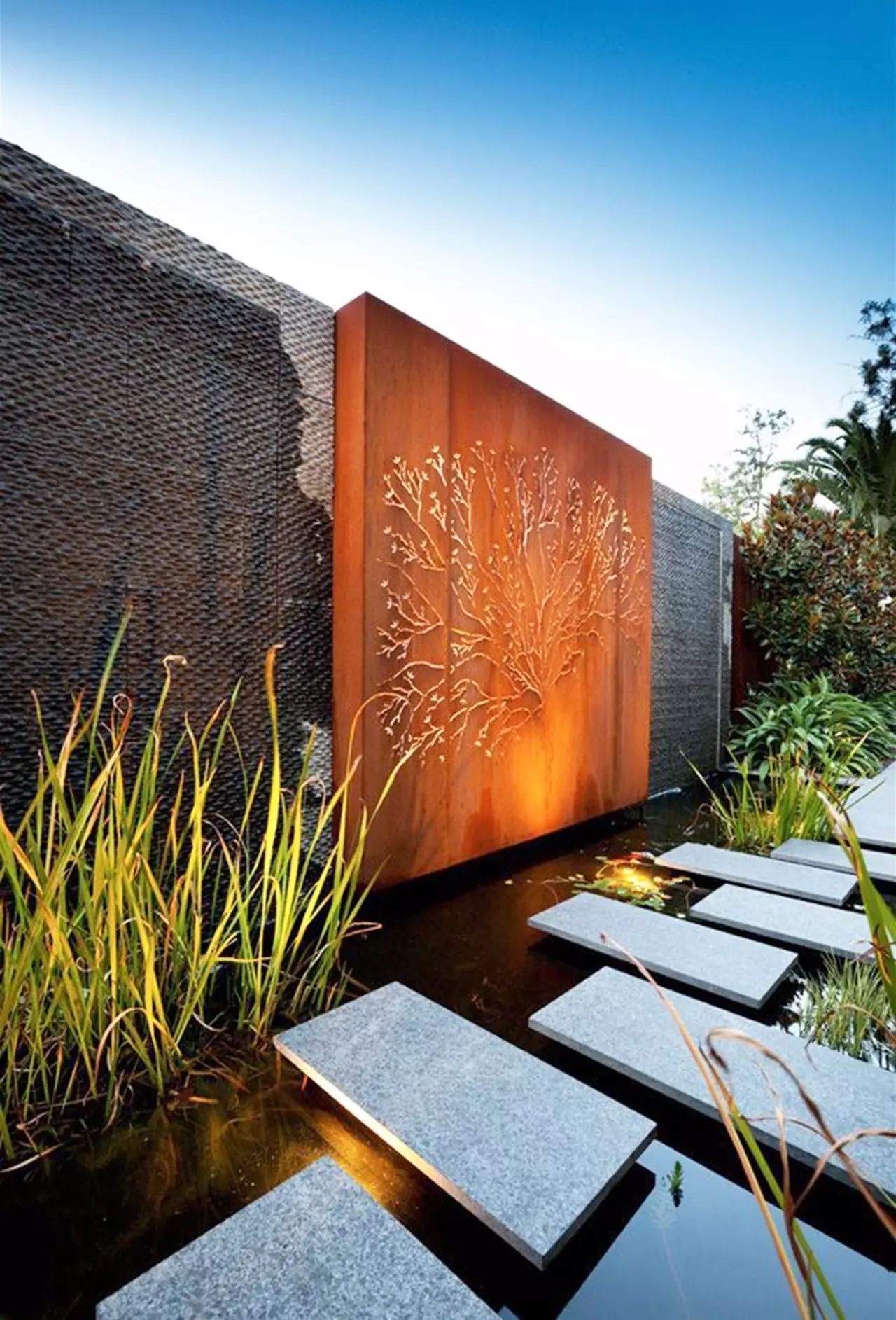 现代汀步的形式不止局限于传统的自然形态,有了更多形式和材质的选择,方形、圆形、椭圆形,石材、木材、金属……