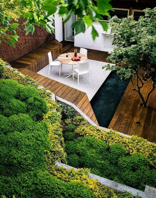 建筑设计、规划设计与景观设计的完美融合缔造出这处梦幻般的住宅屋顶花园,这就使得屋顶花园中的各种疑难迎刃而解。该屋顶花园的设置,有利于景观设计师更为灵活地营造各个小型绿化空间,并与特殊的整体空间结构相互融合。