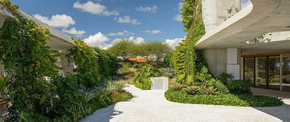花园的西面是一处坡度空间,同时也作为公寓住宅的景观“前庭”。斜坡园的坡度至高点为俯瞰周边城市景致提供了理想的观景视角,站立于此,视角可穿越比斯坎湾眺望整个迈阿密市区。蜿蜒的结缕草小径为整个空中屋顶花园营造出形式多样的景观体验。这里的草种从未刻意修剪或割除,以保持其高高耸起的自然特性。景观设计师们还在空中屋顶花园中特别设计了相应的透水系统,以减缓坡度空间的水流,进而延长屋顶防水层的使用寿命。