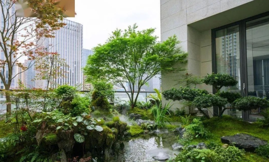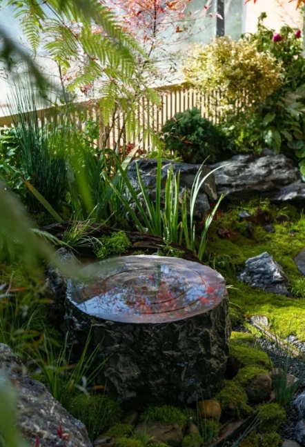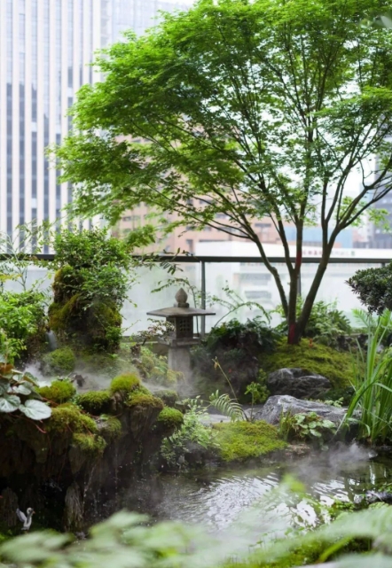 在庭院水景中,设计创造出一种幽谷的意趣;将禅意嵌入山水,融入自然;花木水石,纳天地灵气,宛自天意;一呼一吸,一吐一纳,感受自然的韵律。