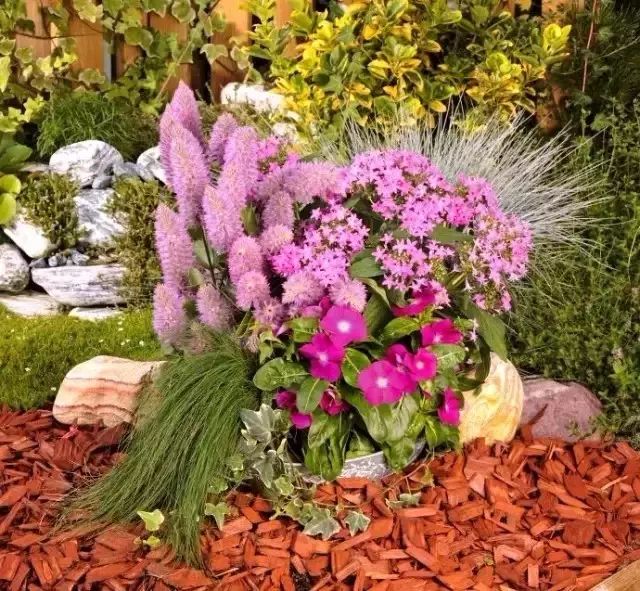 下面介绍4个德国容器花园植物组合实例,供花友设计时参考。除个别花材如头花蓼和贝壳花等外,国内花卉市场应该都能淘到: