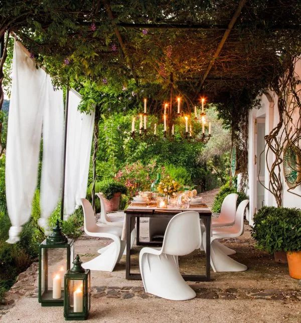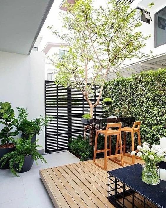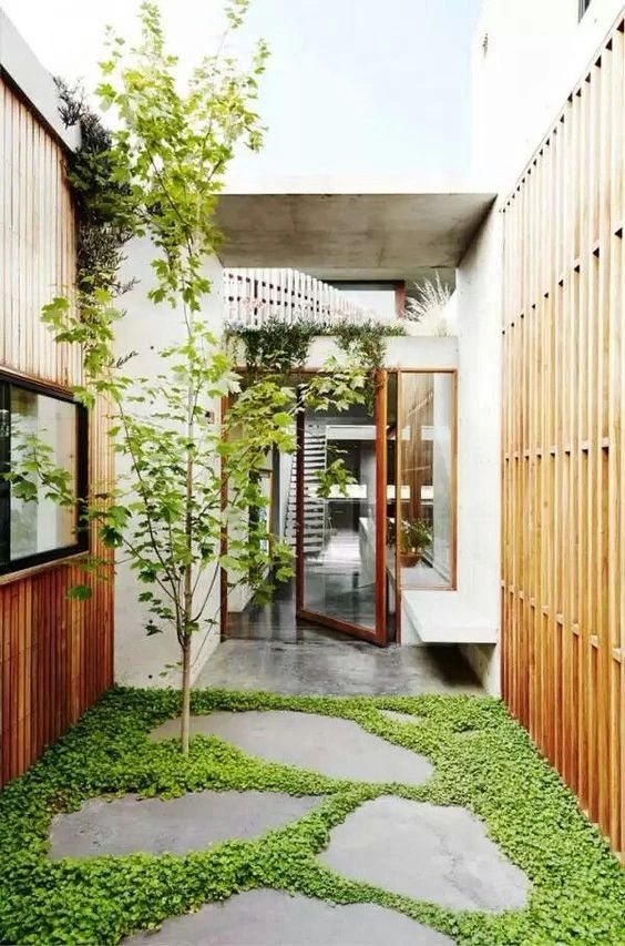 这是非常容易产生美学效果的部分,关键在于如何布置和搭配,同时中国人经常担心的是庭院的私密性,例如夏天在庭院纳凉的时候,可以在院子里搭建花架,在花架下种攀爬植物,也可以设置封顶雨棚,既能提高私密性,又能遮风挡雨更安全,还有一种禅意的感觉。