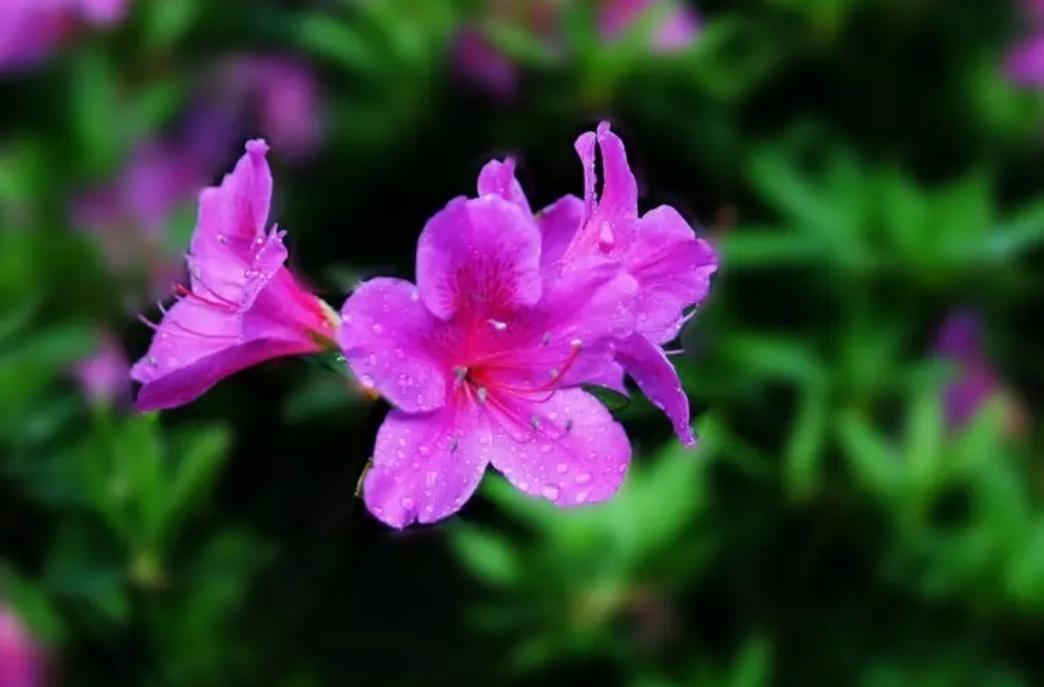 春鹃、夏鹃同为杜鹃花科,是南方常用的观花地被,花团锦簇、颜色艳丽,常片植或用来做镶边材料。