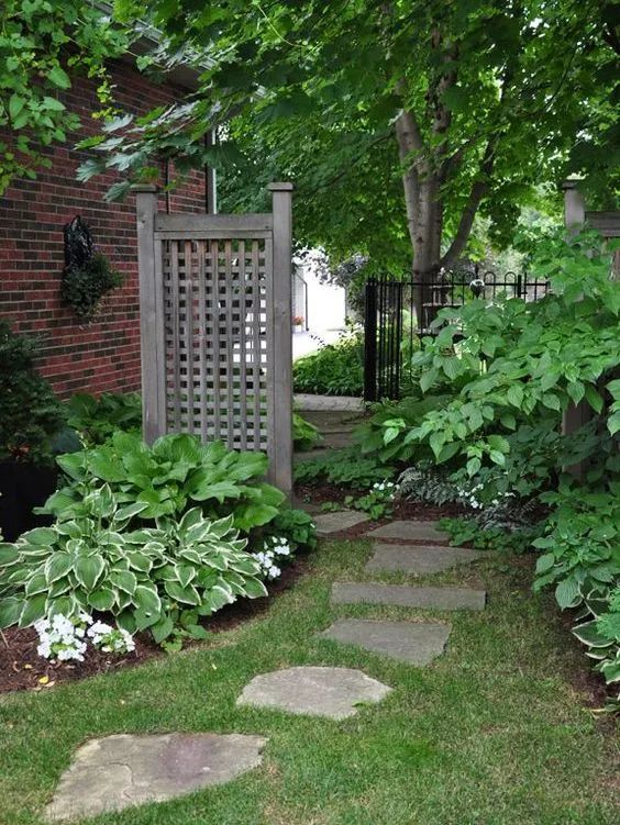 在狭长的空间中布置汀步,与草地自然的融为一体,整个空间看起来便不至于太拥挤。