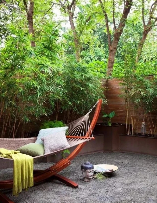 如果真正的目标是花更多的时间享受你的花园,不要忘了使它成为一个邀请的地方。设置一个吊床,拉下一把椅子在树荫下,或者在露台上散布一个快乐的户外地毯。然后坐下来放松。