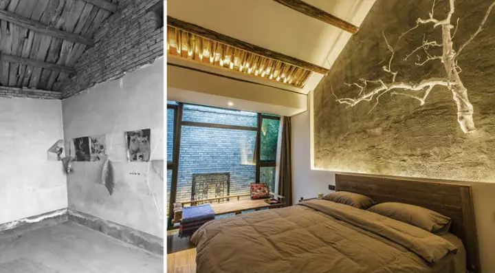 整个小院一共拥有两间卧室,每一间都精心打造出完美的氛围。这是其中一间主卧,素面朝天的床头背景墙保留了原始粗糙的水泥质感,但设计师通过丰富的光影变化,和一截充满禅意的枯树枝来营造意境,最终形成别具一格的睡眠空间。青岛花园设计公司——兰亭景观为您介绍。