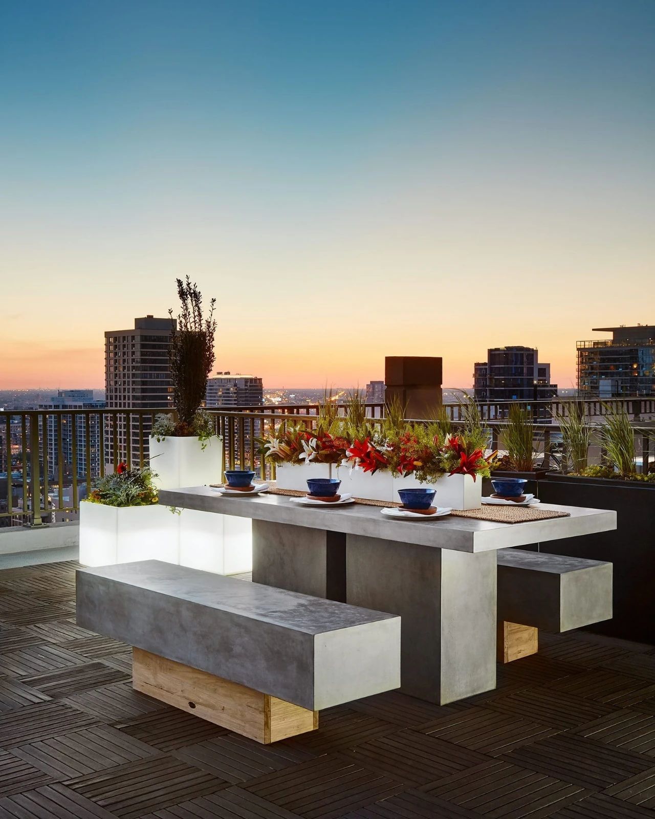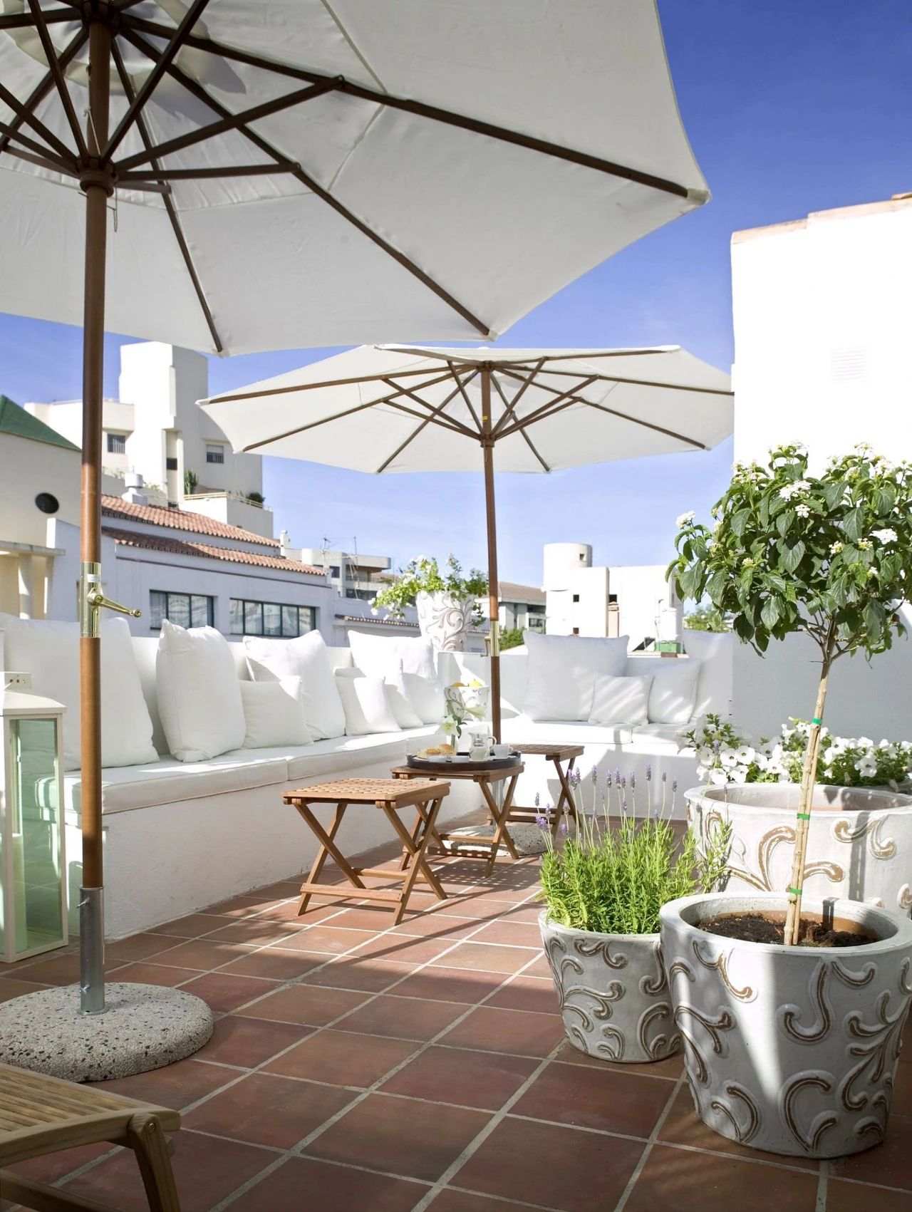 一定要根据自己的用途,选择大小风格合适的家具,露台的家具和栏杆建议不要超过三种颜色,色彩太多会给人凌乱的感觉,而且会抢植物的风头。