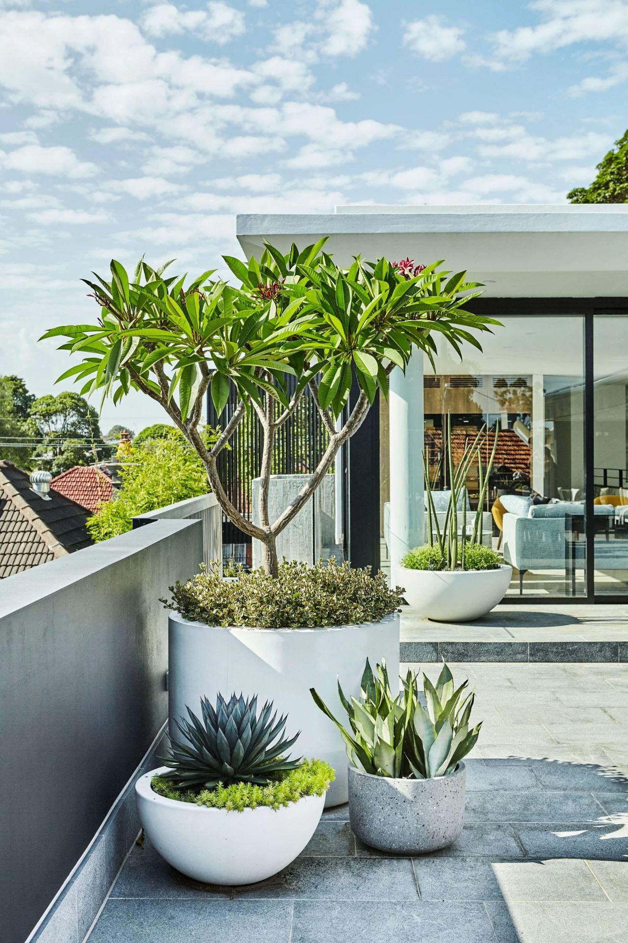 开放性露台开放面积尽量大,尽量不使用玻璃或者彩钢玻璃这些材料封闭,因为大部分植物需要充足的阳光、流通的空气,当然还有雨水的浇灌。