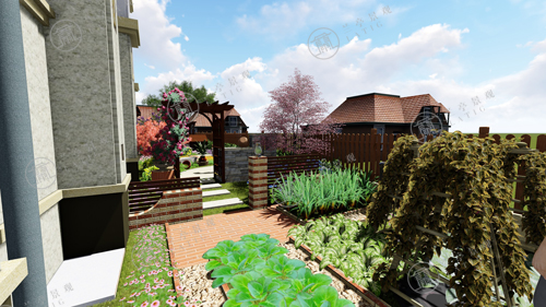 8.菜地通过荷兰砖进行分割和围合,结合自然石子的铺设,塑造菜地更贴近自然的景观效果。