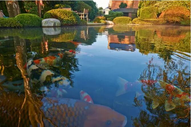 几何并不一定意味着矩形。这浑圆的池塘提供了相同的结构效果,营造独具特色的池塘风格,增加的喷泉或瀑布将有助于水体通气。在日本,一般建房屋必建庭院,建庭院必设水池,水池中必养锦鲤。锦鲤色彩斑斓,艳丽多姿,雄健有力。或红白相间,或黑红相配,是装点日本庭院的重要内容。 若养出一条名贵锦鲤后,往往以自己的名字命名,主人的身价就可以抬高百倍。