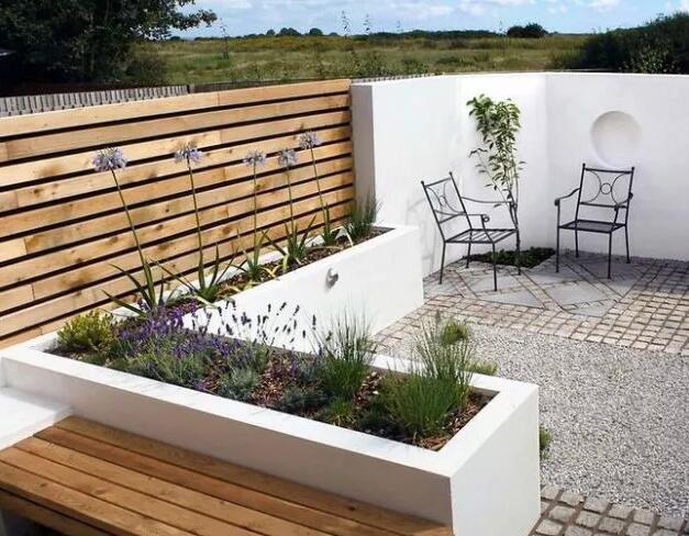 小庭院空间不大,但仍然可以尽可能多地种植植物。小庭院的景观也有别致的乡村式和奢华的时尚式景观。为调节景观表现,设计师们常在小庭院中用到小型植物和一些组合型材料。好的设计师不会为了建筑缩小庭院的尺寸,而是会更多表现强调室外场景。
