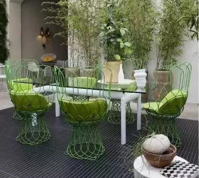 在庭院的各种材料都要经历风吹日晒,所以在选材上一定要耐用,在家具上现在也已经有了很多的选择,从编藤到铸铝到实木,首先推荐大家使用的是实木,在选择上要选择油分比较大的材质,如杉木、松木、柚木等,而且一定要做防腐处理,但对于这样的家具一定要好做好变形和褪色的准备。