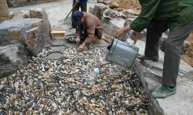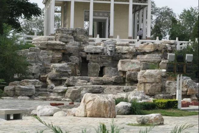 2、同色---尽量选择色泽一致或相协调的山石。