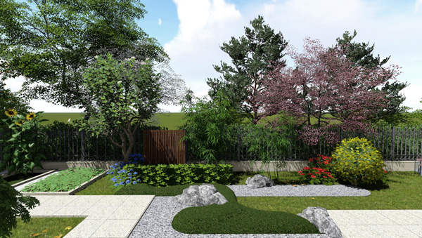 创作源于对生命自然的感知,遵循自然之道以绿化为主,不过分夸张。适当点缀小品,做到四季有花四时有景。