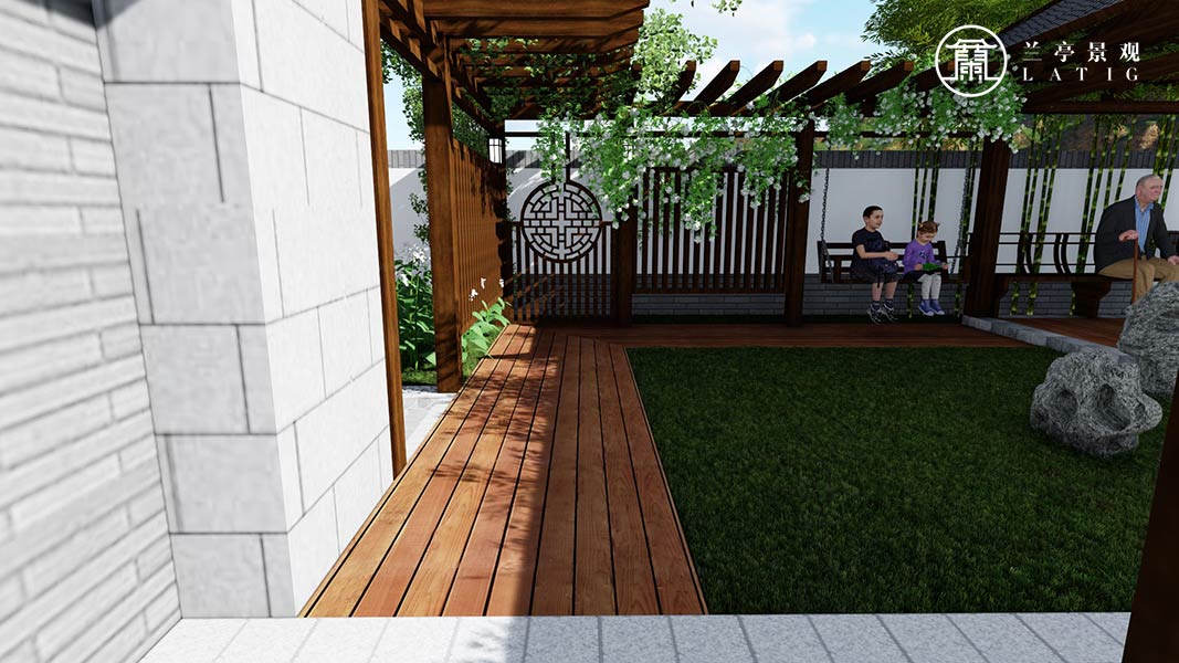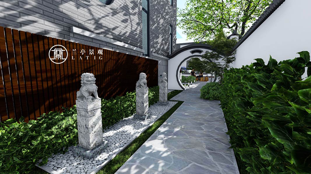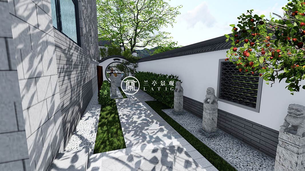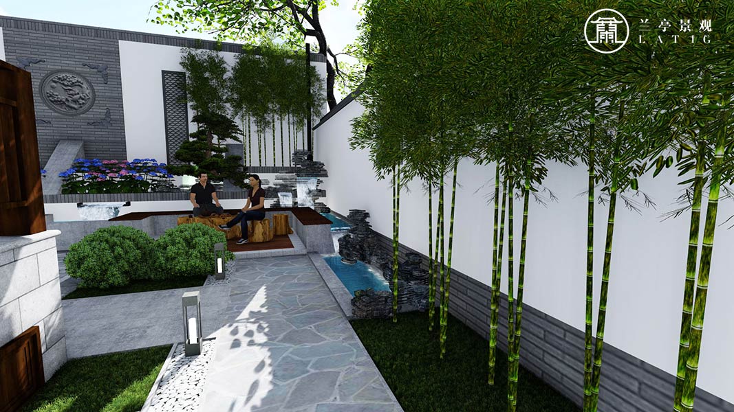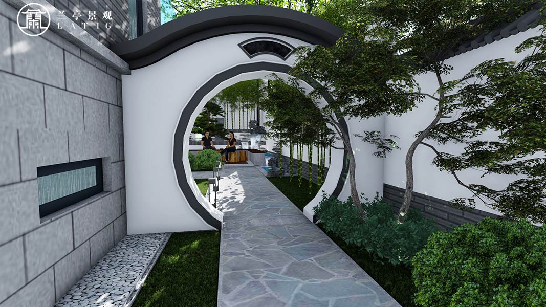 属性:庭院效果图 庭院面积:500-1000㎡ 庭院设计风格:新中式