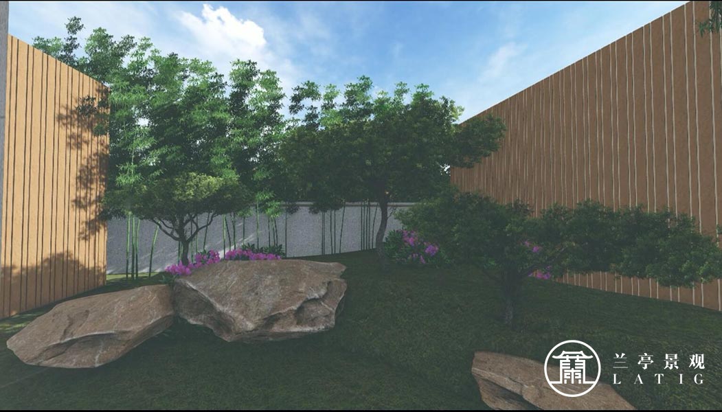 属性:庭院效果图 庭院面积:200㎡以下 庭院设计风格:新中式