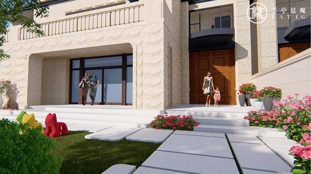 属性:庭院效果图 庭院面积:200-500㎡ 庭院设计风格:现代简约