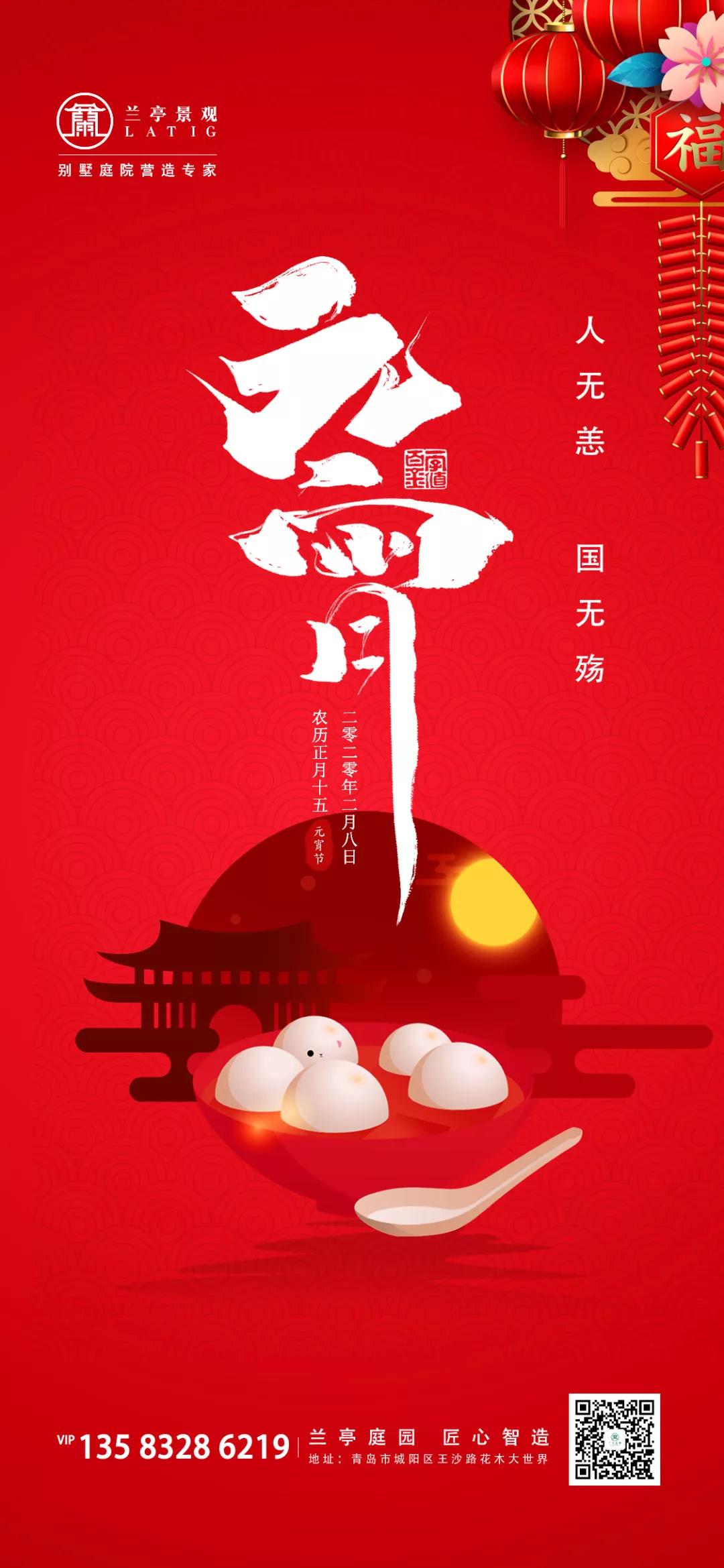 元宵佳节幸福安康,人无恙,国无殇 属性: 庭院面积: 庭院设计风格: 设计师: 别墅庭院营造专家 浏览量:4043 发布时间:2020/2/8 11:19:29 关注兰亭景观庭院设计 青岛庭院设计|屋顶花园设计|民宿景观设计|锦鲤鱼池建造 服务热线:13605321758、13583286219 官方网站:www.latig.com