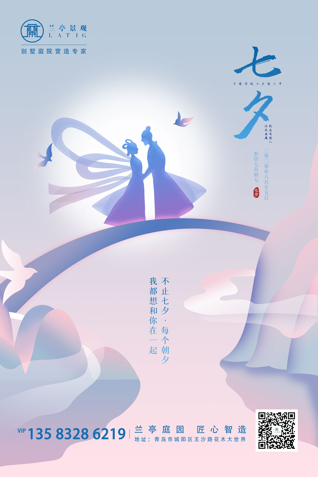爱你不止七夕,青岛庭院设计为你的幸福生活助力! 属性: 庭院面积: 庭院设计风格: 设计师: 青岛庭院设计 浏览量:5837 发布时间:2020/8/25 11:36:16 春暖花开时,看繁花簇拥,争相竞开;初夏入夜时,静躺望星空,摇扇乘凉;深秋落雨时,赏火红落叶,聆听雨声;寒冬晴天时,晒太阳取暖,感受阳。 在这个特别的日子里,青岛兰亭庭院设计公司-兰亭景观为您营造墅居式的花园生活,让你拥有了无数种生活的可能,太太的下午茶时光、先生的精神领地,父母的花草情结、孩子的成长乐园,生活的点滴情调,都于方寸之间尽情演绎。坐在庭院里,就仿佛坐在山水间,一花一世界,一木一浮生,一笑一尘缘,一念一清静。天人合一,不外如此,布局精妙,别有洞天。