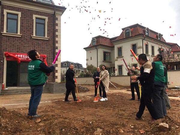恭喜青岛依云谷别墅庭院开工大吉 属性: 庭院面积: 庭院设计风格: 设计师: 青岛庭院设计施工 浏览量:4217 发布时间:2020/9/5 14:36:28 兰亭景观孙总携设计部、工程部、营销部的项目负责人员提前到达现场,恭贺业主庭院景观项目开工大吉! 伴随着礼花绽放,铲土仪式准时开始。俗话说“春雨贵如油”,它也及时赶来参加这场欢庆典礼,为业主欢呼添彩!