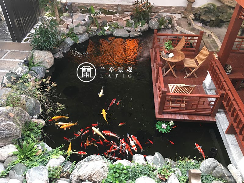 青岛锦鲤鱼池设计-城阳兰亭景观展厅锦鲤鱼池设计