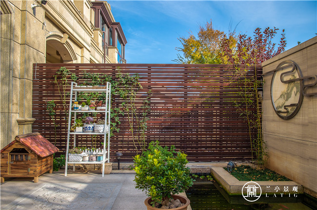 设计师在后花园的设计上,移步易景,宛约如画的红枫树,简约而不简单的月亮门,清香怡人的户外木铺,别具一格的对景墙,千里寻到的造型松,巧夺天工的造型石……无一不是花费了太多的斟酌与功夫。置身其中,无论从哪一个角度去看,都能展现完美的风景。