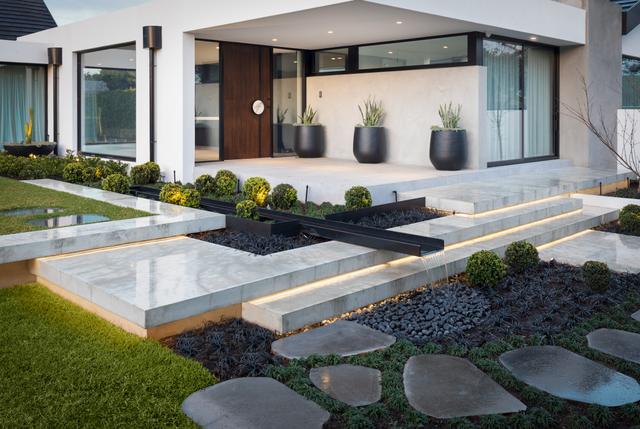 水景墙是庭院里最让人放松的景观装置,喷泉水墙是比较传统的设计方式,但能带给花园一种极简和清新的面貌。动态的喷水效果能打破整面墙的厚重感,将一静一动的景观元素结合在一起,使整个花园更具活力。