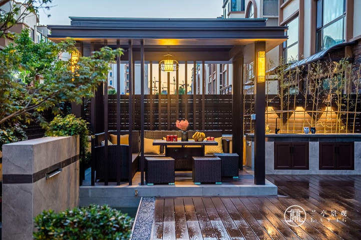 青岛水岸新都别墅庭院设计|屋顶花园设计