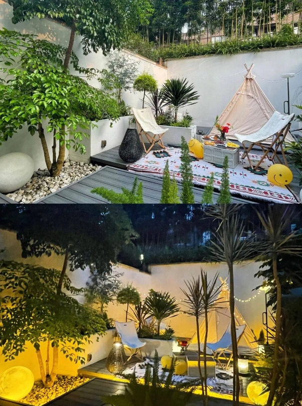 氛围感是照明需要考虑的因素之一,花园需要一种生活感和仪式感,既实用又美观,有了灯光,你可以在晚上做更多的活动,喝茶,聊天,烧烤和户外电影,这就是生活的意义,夜晚的花园必须有灯光才能有灵魂,这就是仪式感!青岛花园设计公司——兰亭景观为您介绍。