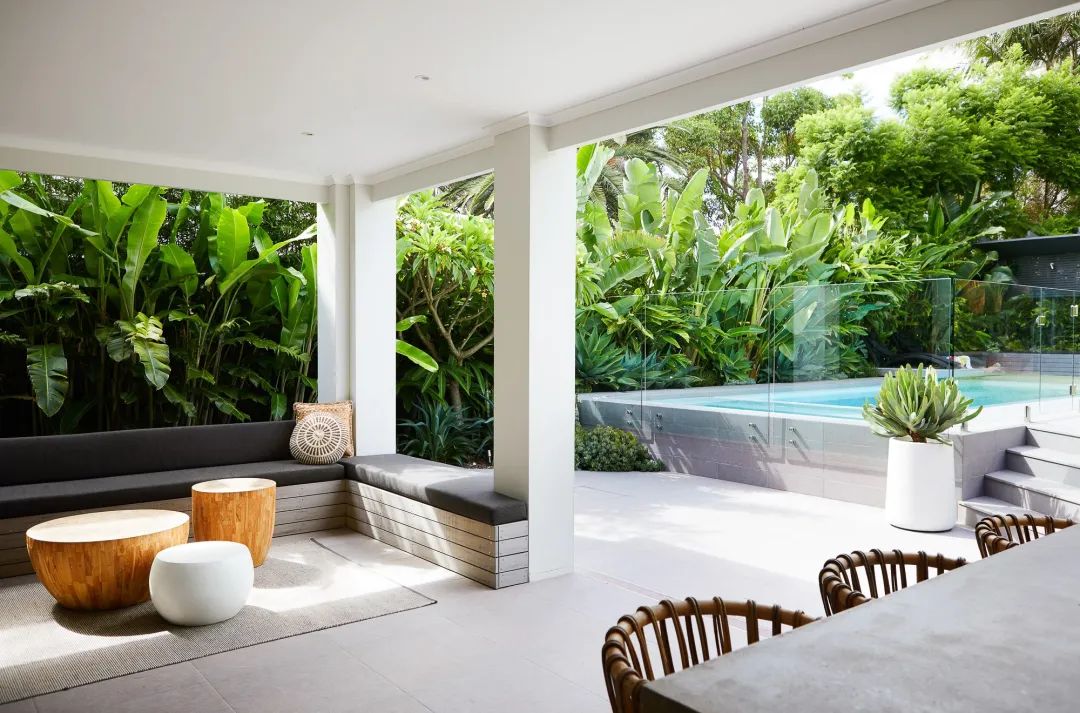 玻璃的高透视觉能和现代风格的花园融洽一体,轻松地营造了现代氛围;这种材质相较于其他材质也更容易清洗,且能受得起长时间的风吹日晒,维护成本较低。