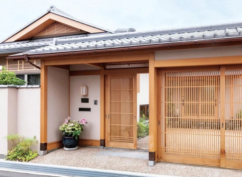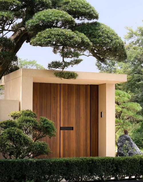 日式庭院讲究禅意、自然、宁静,所以庭院大门也要符合整体基调。日式风的庭院大门一般是木质的,由竹子制成的大门也很常见,给人感觉很自然。