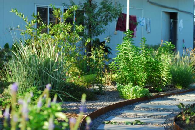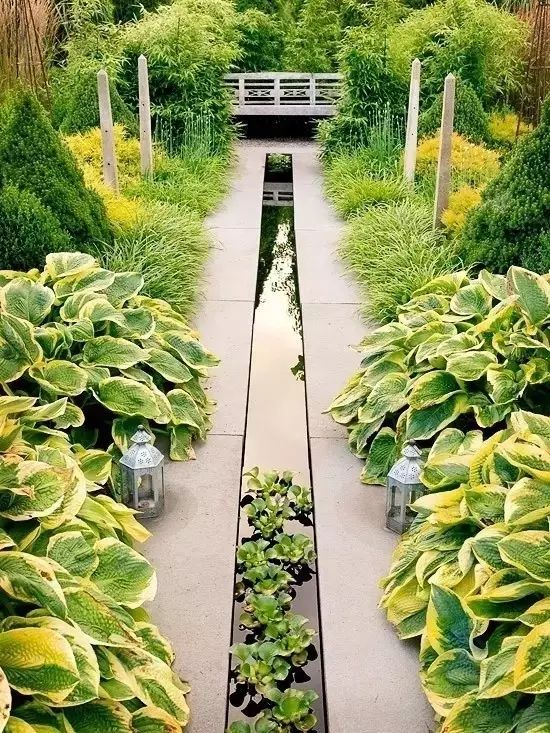 在植物的叶型选择上,可以把具有硬实、直立属性叶片的植物与体形小、质地柔软、叶型较圆叶片的植物(如欧亚甘草、马樱丹属植物)混合种植在一起,形成在叶型和外形上的巨大反差,给人较强的视觉效果。青岛花园设计公司——兰亭景观为您介绍。