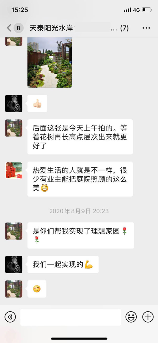客户的认可,是对我们工作莫大的鼓舞 来源: 点击次数:4025 发布时间:2020/8/10 15:04:03 客户的认可,是对我们工作莫大的鼓舞。打造美好花园,筑就幸福生活。欢迎来兰亭景观体验我们不一样的服务。