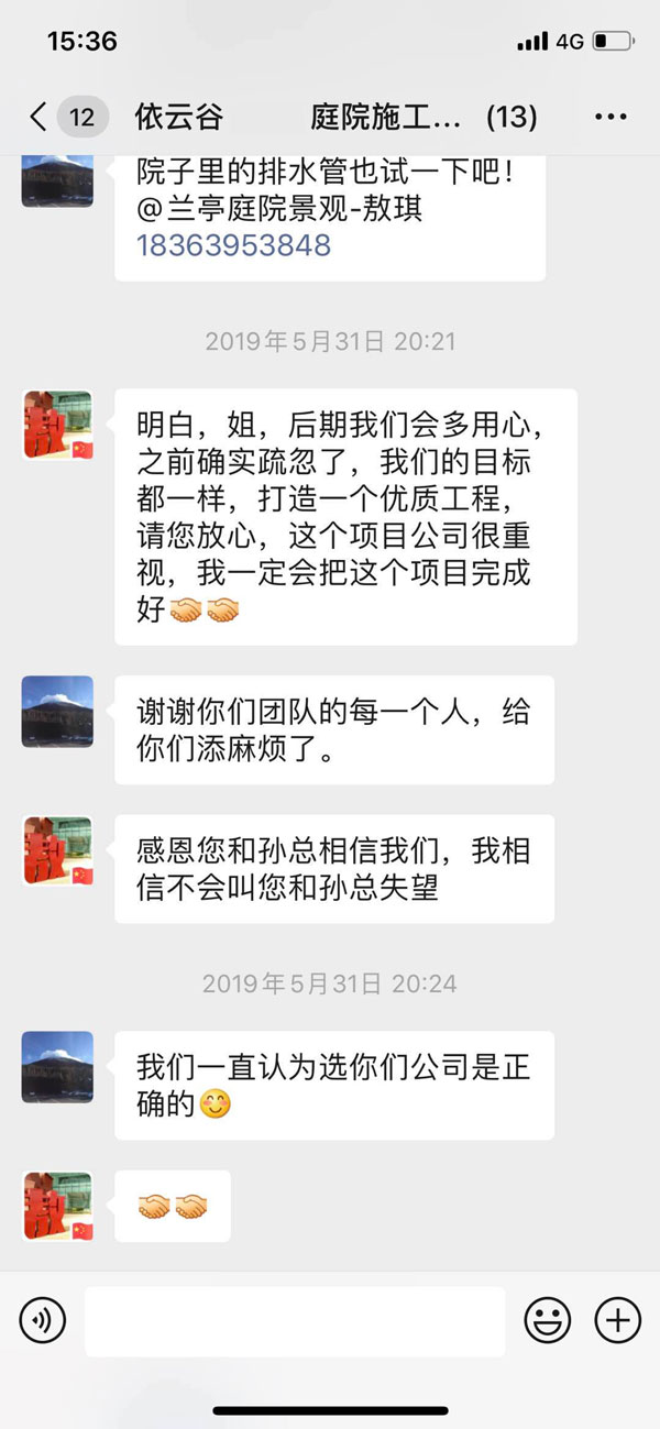 依云谷别墅庭院竣工交付,获得客户高度评价 来源: 点击次数:4992 发布时间:2020/8/18 15:35:32 选择兰亭景观庭院设计,就是选择高品质庭院生活。感谢依云谷业主对兰亭景观的认可和高度评价