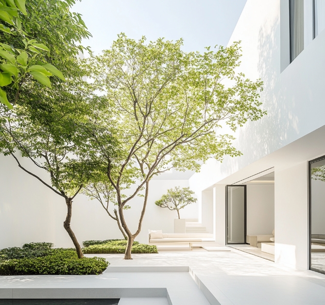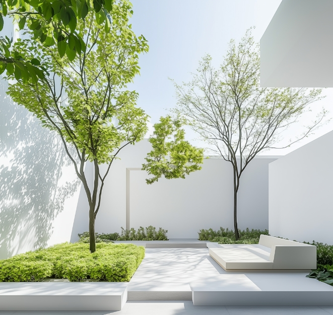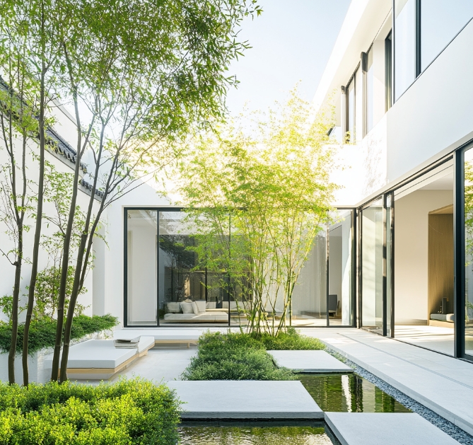 在繁华喧嚣的尘世中,人们常常渴望寻找一方宁静纯粹的角落,让心灵得以栖息。而极简花园,恰如一颗璀璨的明珠,散发着独特而迷人的魅力,引领我们走进一个简约却又充满诗意的世界。极简花园,以其简洁的线条、纯净的色彩和精心挑选的元素,展现出一种极致的美感。当我们踏入这样一个花园,首先感受到的是一种宁静而平和的氛围。没有过多的繁杂装饰,没有绚丽夺目的色彩堆砌,只有最本质的自然元素与简洁的设计相互融合,营造出一种空灵而深邃的意境。青岛别墅庭院设计公司——兰亭景观为您介绍。