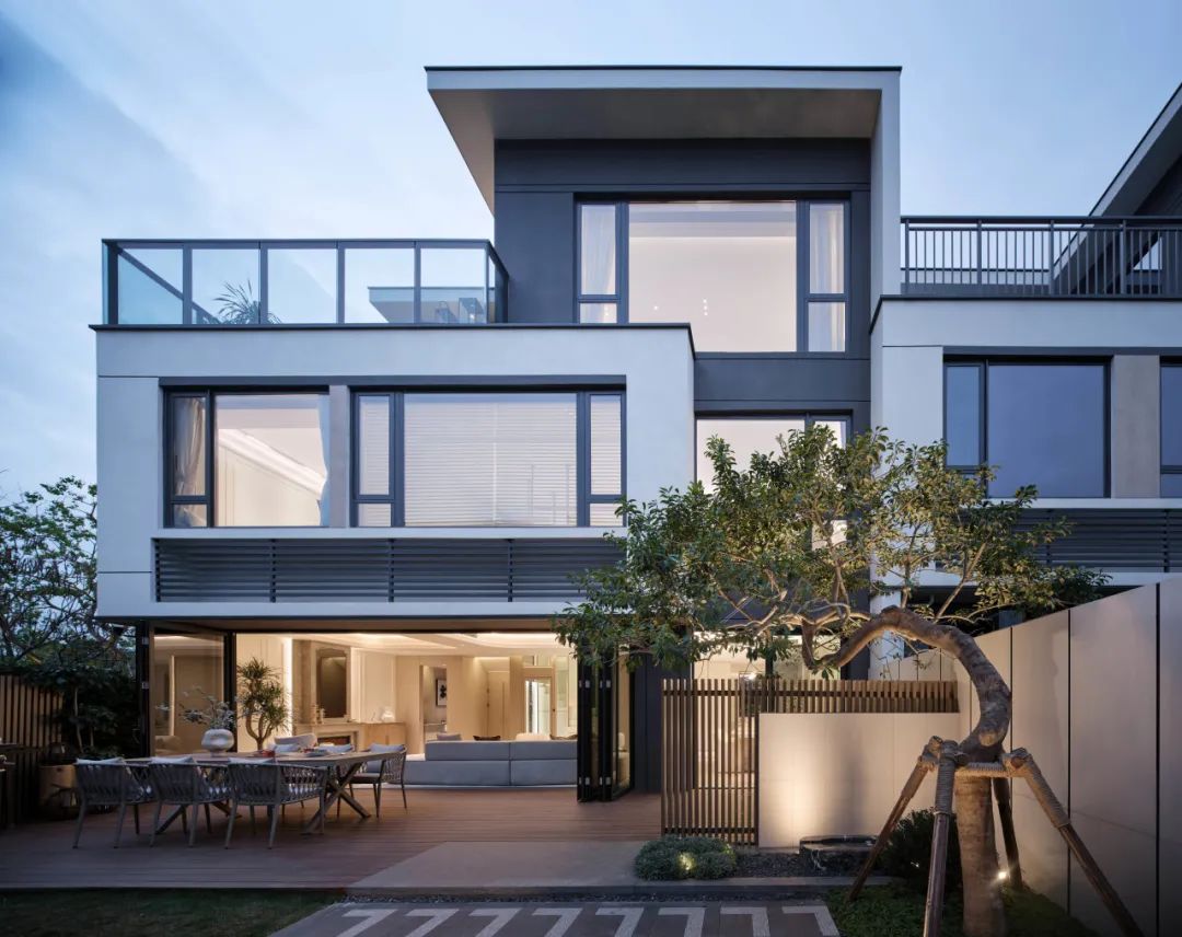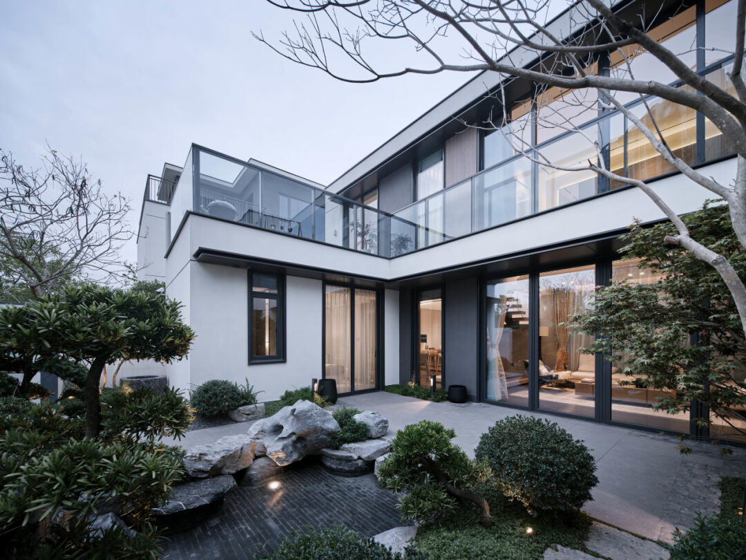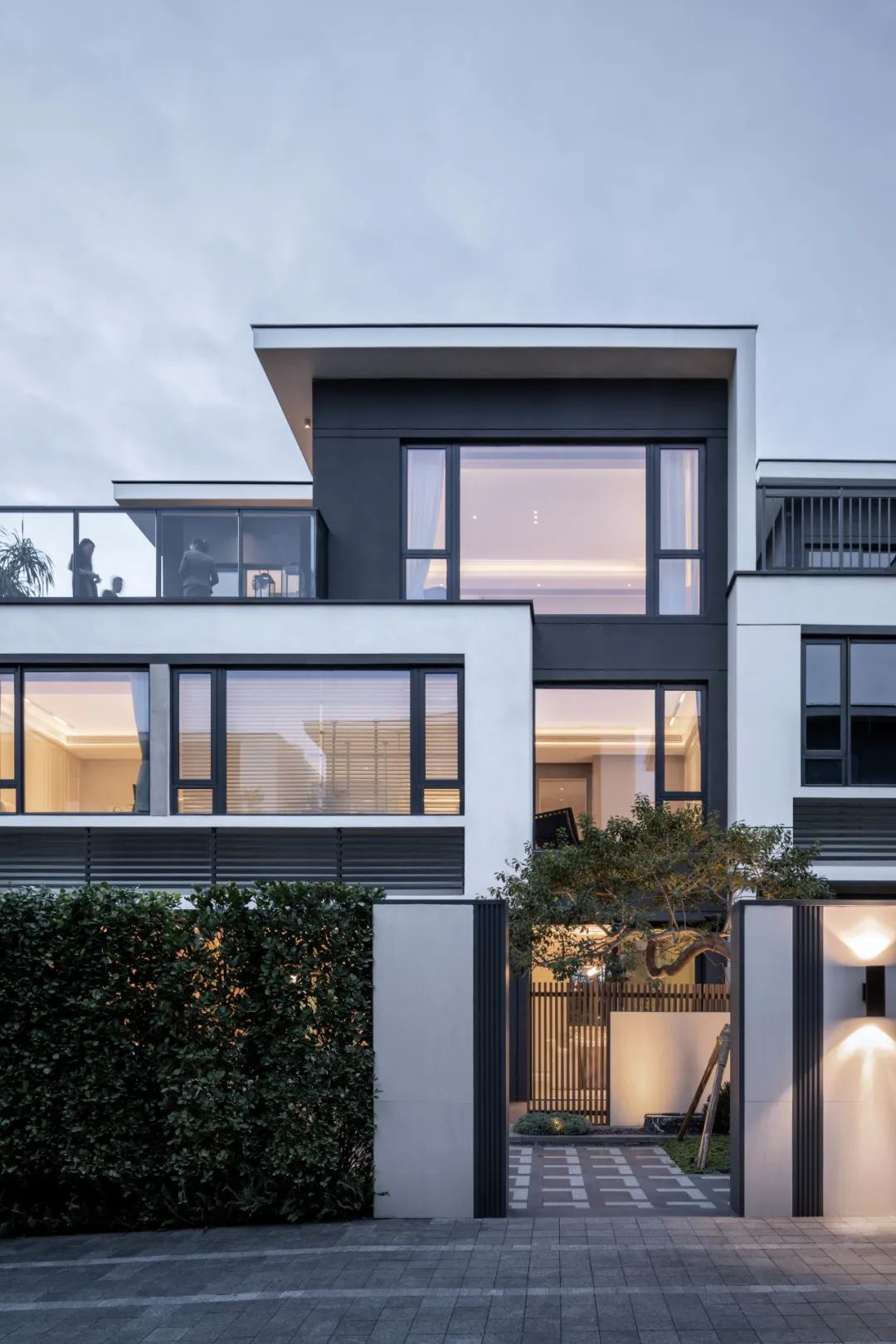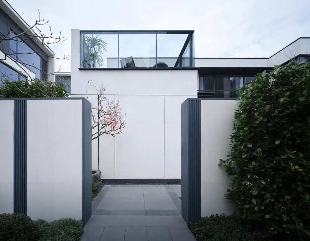 建筑立面的黑白之间尽显中式水墨的风雅,凝练的线条将现代建筑与传统国风相融合。日照别墅花园设计
