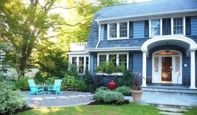 减少草地面积意味着花更少的时间割草,施肥,除草和再种植。如果你不想完全摆脱草坪,可以考虑减小它的大小。比如在纽约州北部的这个前院,设计师减少了草坪的面积,并用椅子雕刻出了一个卫星天井的空间。