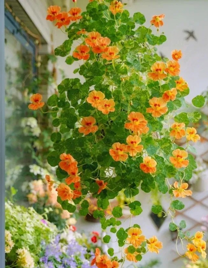 观赏花卉在厨房花园中可用作传粉媒介、抑制杂草或防治害虫。其中包括万寿菊、旱金莲和金盏花。