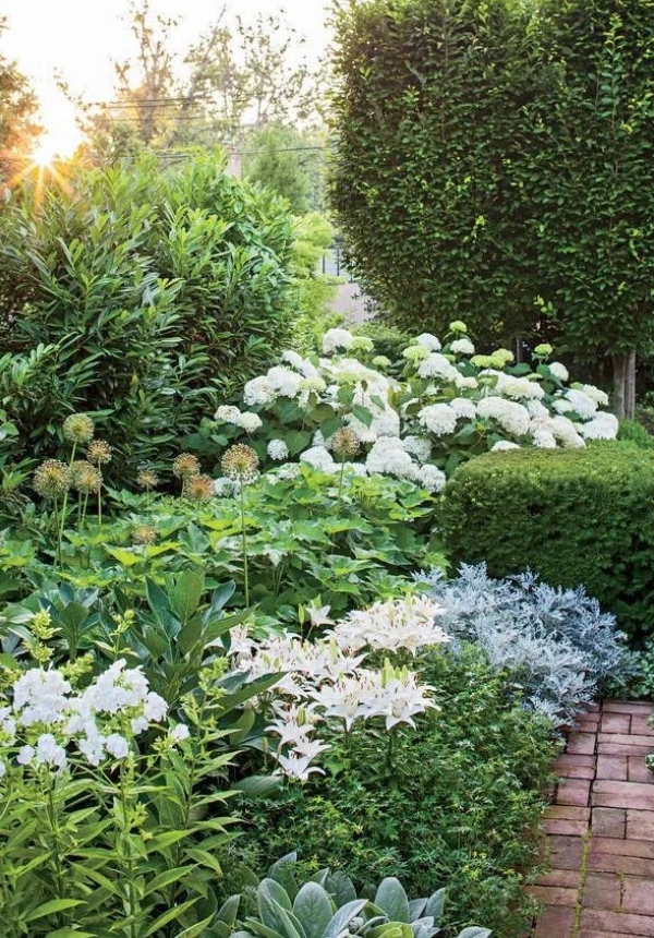 白色系:纯净、浪漫,适合打造清新自然的北欧风花园。可以选择白色玫瑰、绣球花、百合等花卉,搭配白色鹅卵石、木质地板等元素。