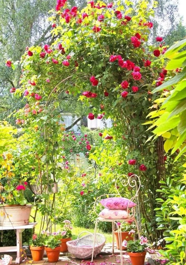 粉色系:甜美、梦幻,适合打造少女心爆棚的浪漫花园。可以选择粉色月季、蔷薇、郁金香等花卉,搭配粉色抱枕、铁艺桌椅等元素。
