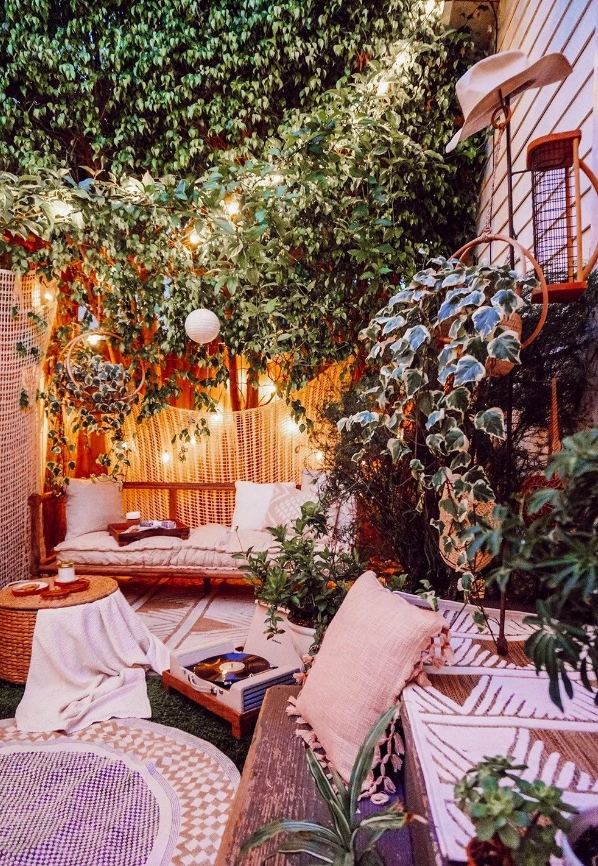 灯光设计: 温暖的灯光可以为花园增添浪漫温馨的氛围。可以使用太阳能灯串、落地灯、壁灯等,打造出梦幻的灯光效果。