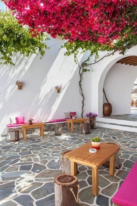 花园小空间里,融洽的色彩搭配尤为重要,因为所有的花园元素,包括墙壁、地板、家具、植物等等,都会紧密地挨在一起形成整体。