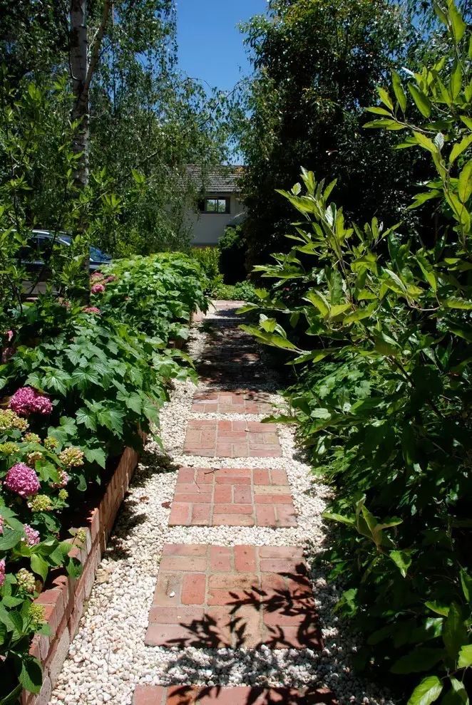 当水景的材质与地面园艺砖铺装统一起来,加上植物的点缀,真是美不胜收。也许你家也需要这样一条园艺砖之路,一条通往幸福的道路~