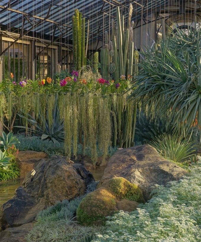 01、温室园林景观主题要契合生态、绿色、环保等,尽量以设施调控技术、农艺栽培技术来维护餐厅的优美环境,形成以绿色景观植物为主,蔬、果、花、草、药、菌为辅的植物配置格局。青岛庭院设计