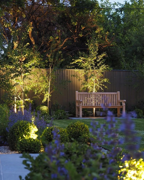 低矮灌木不适合近距离投光照明,容易破坏灌木形体的完整性,所以我们可以使用下照式草坪灯,从上方打光,远距离投射,保持灌木形体的完整。