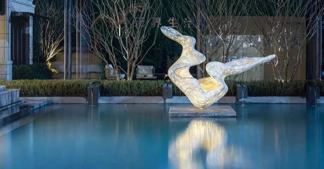 庭院水池的灯光设计可以用流动闪烁的灯光激活它的视觉效果,伴随着水流声植入音乐,制造梦幻的空间景象。